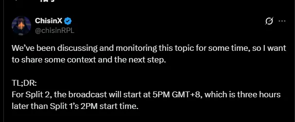 虎扑03月16日讯 LCP产品经理ChisinX在个人社交媒体上谈到了一赛段LCP收视率下跌30%的问题,并在随后表示第二赛段起LCP会将比赛日的开赛时间从下午2点改为下午5点。
