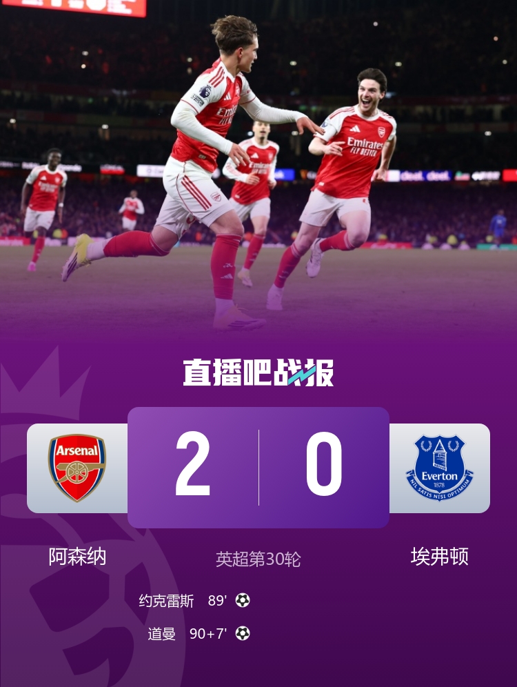 多赛1场9分领跑!阿森纳2-0埃弗顿 16岁道曼成为英超最年轻进球者